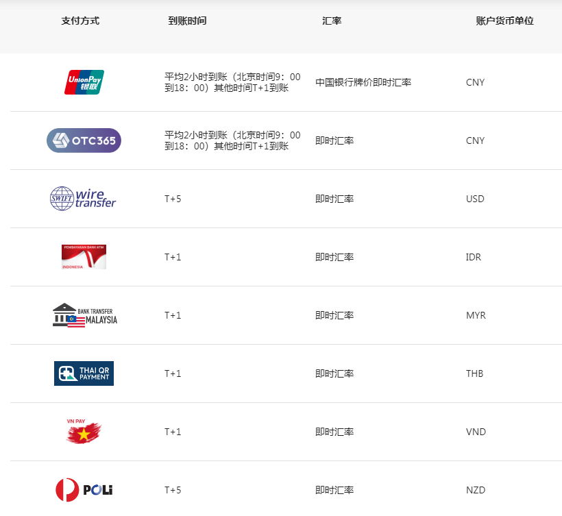 选择备受信赖的支付方式,无入金手续费 极速出金,平均2小时内到账